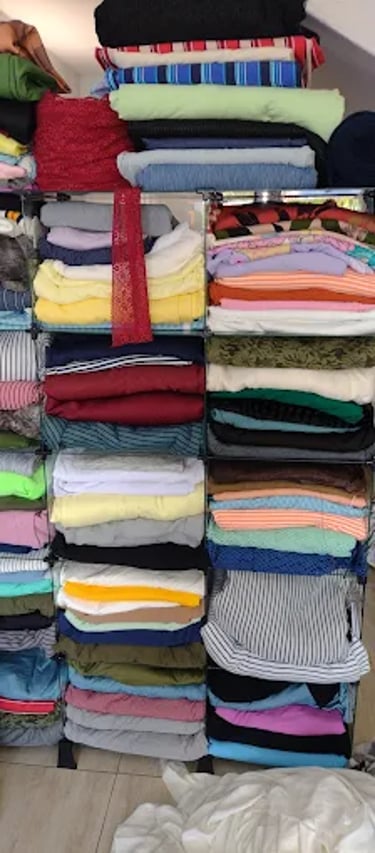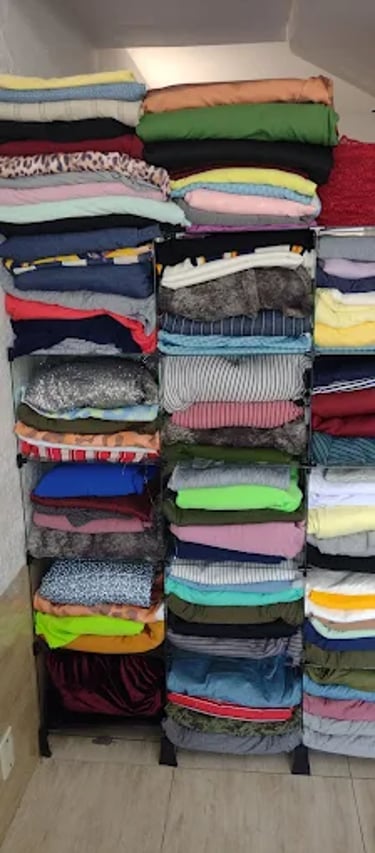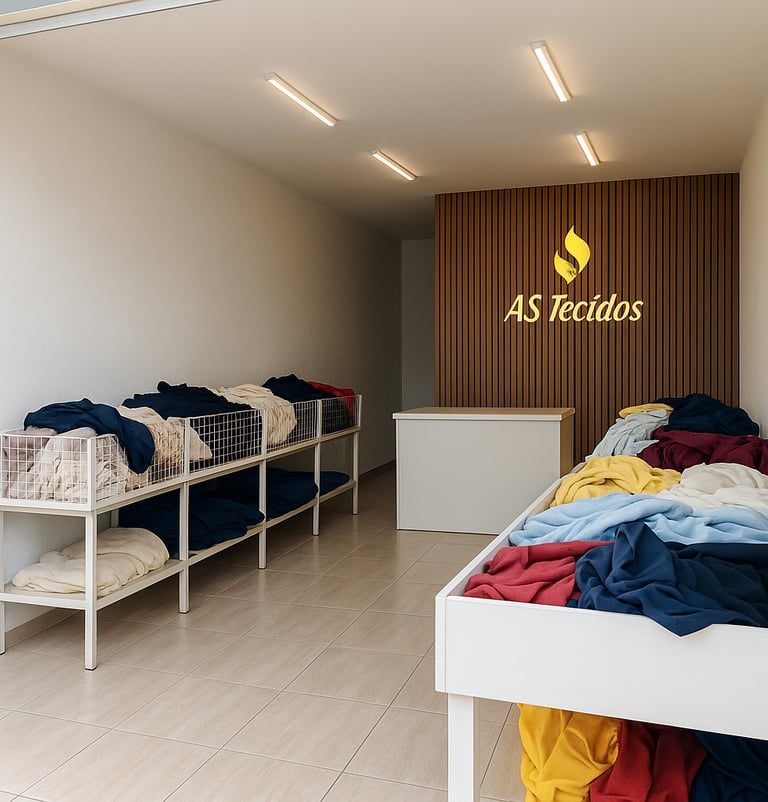 Pouco depois, a operação passou para a garagem, ganhou loja física e, com muito trabalho e fé, um galpão para o atacado. Hoje, atendemos presencialmente e online, levando tecidos para diversos estados do Brasil, sempre com qualidade, preço justo e acolhimento em cada atendimento.